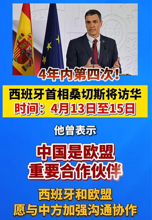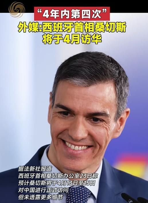 近日西班牙首相桑切斯办公室正式官宣,将于4月13日至15日对中国进行正式访问。